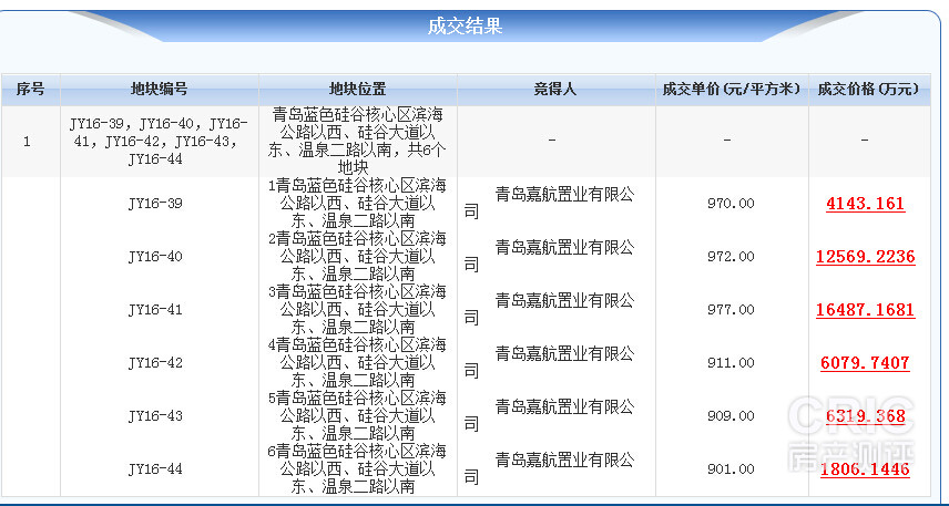 9月14日,青岛嘉航置业有限公司以总价4.7亿元,成功竞得位于青岛蓝色硅谷核心区滨海公路以西、硅谷大道以东、温泉二路以南的六宗商住办用地,占地面积共计约22.59万㎡,规划总建筑面积约为:49.71万㎡。