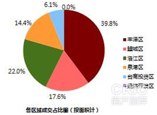 数据表现:本周丰泽区夺得区域成交面积排行榜冠军,共成交85套、成交面积10380㎡,环比上涨39.9%,成交均价12153元/㎡,环比上涨2.6%,成交主力为泉州万科城;洛江区本周共成交48套、5756㎡位居排行榜第二位,成交面积环比上涨96.2%,成交均价6398元/㎡,环比下跌20.6%,小米时代成为其成交主力;鲤城区本周排名第三,共成交42套、4609㎡,面积环比下跌16.2%,成交均价8557元/㎡,环比上涨11.5%,成交主力为建发珑璟湾。