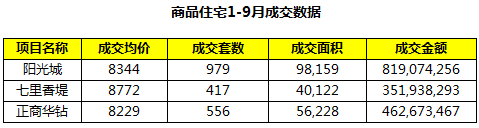 大排档往往有着亲民的价格,因此属于大众消费。阳光城目前高层在售均价为8500元/㎡,与周围的七里香堤和正商华钻相比,价格最低。同时从克而瑞官方发布的备案数据看,阳光城1-9月的成交均价为8344元/㎡,与管城区8535元/㎡的板块均价相比,低了近200元,在郑州主城区的楼盘中属于大众消费的楼盘。
